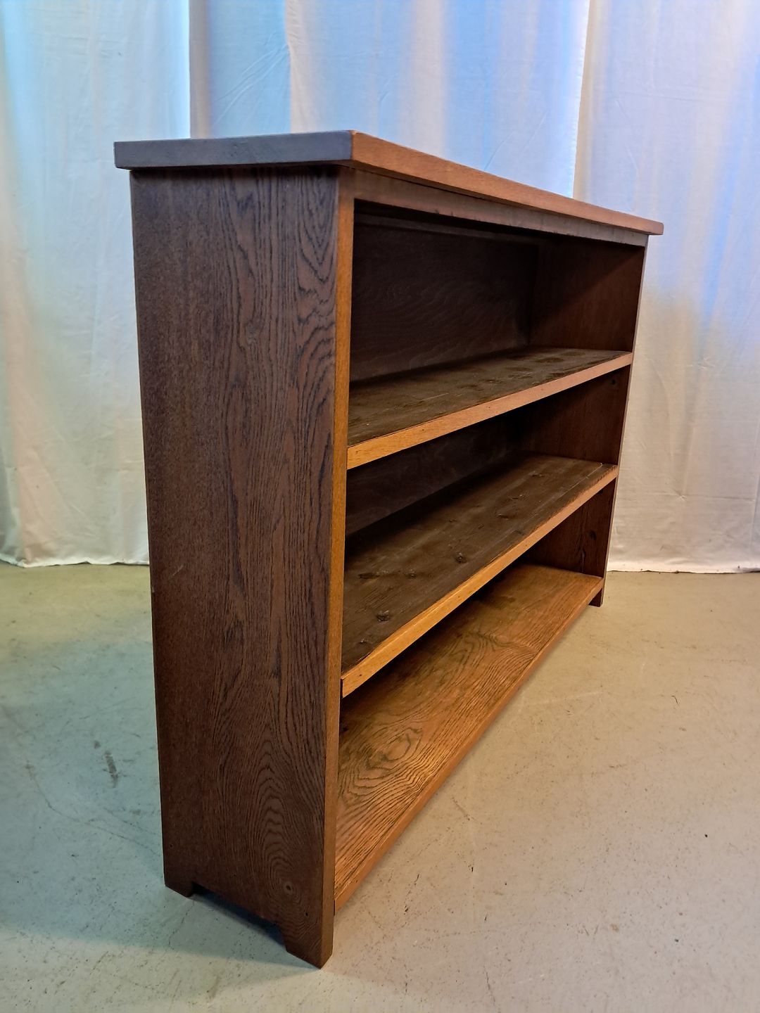 Reol i massivt egtræ, fra 1910erne. Den har brugsspor. Højde 88cm Bredde 128cm Dybde 27cm Emne nummer: 77451