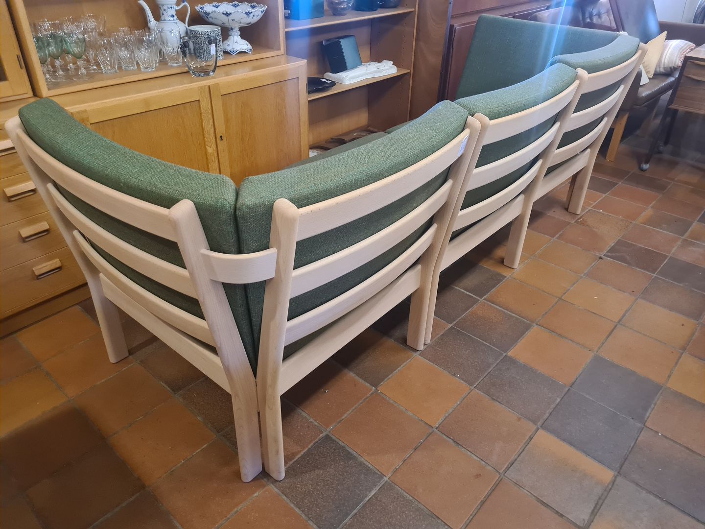 Hans J. Wegner 3. pers modul sofa model GE280 Udført og stemplet hos Getama år 2014. Fremstillet i bøg med hynder i uldstof. Pæn brugt stand. Mål: H. 75 cm. L. 220 cm. D. 78 cm. SH. 39 cm. Emne nummer: 80906