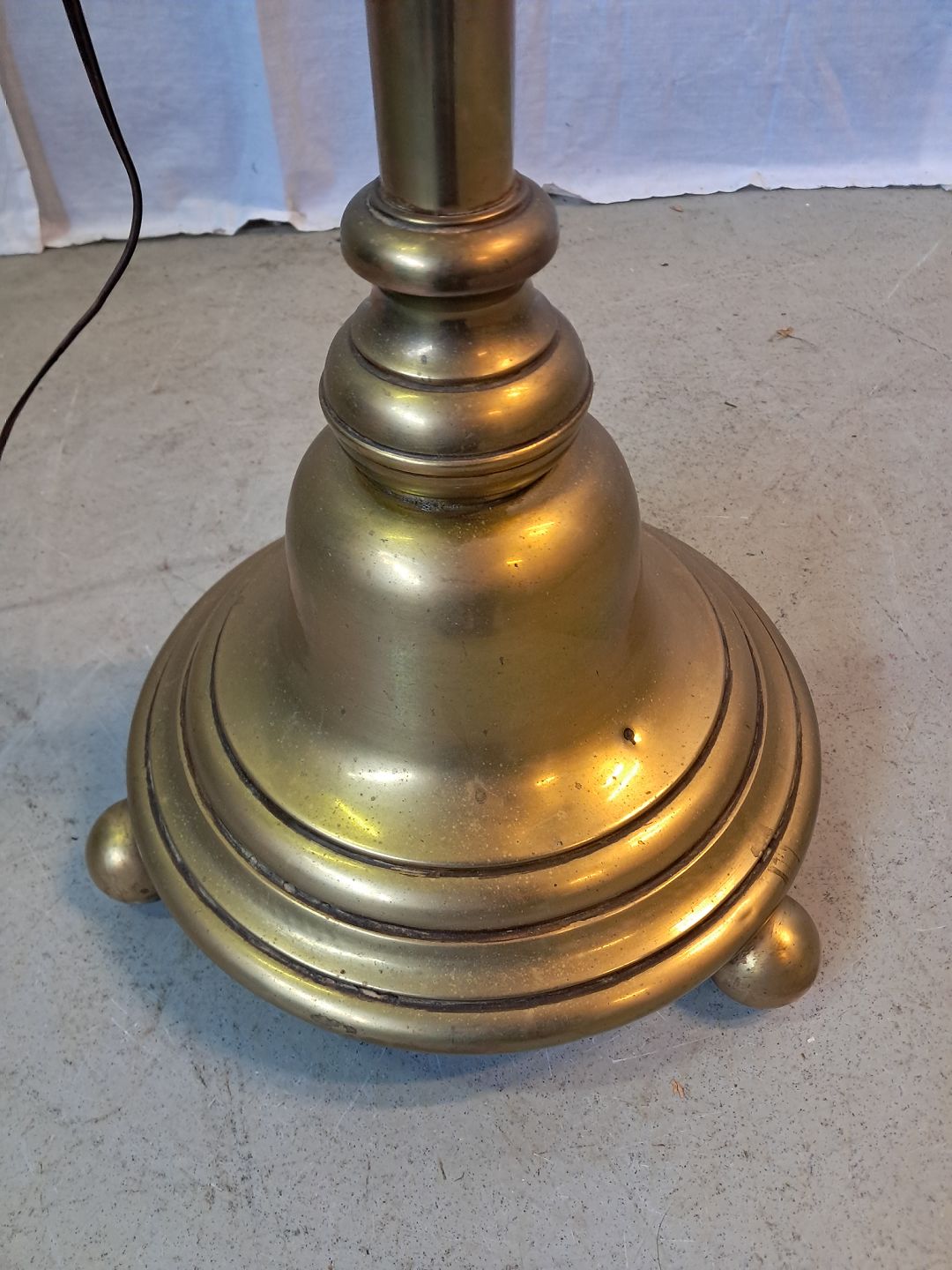 Standerlampe i messing, fra 1910erne. Den har brugsspor. Højde 150cm Diameter på fod 34cm Emne nummer: 77507