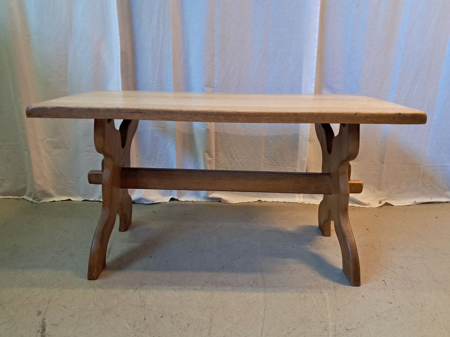 Sofabord i massivt egetræ, fra 1980erne. Det har brugsspor. Højde 56cm Bredde 55cm Længde 105cm Emne nummer: 77520