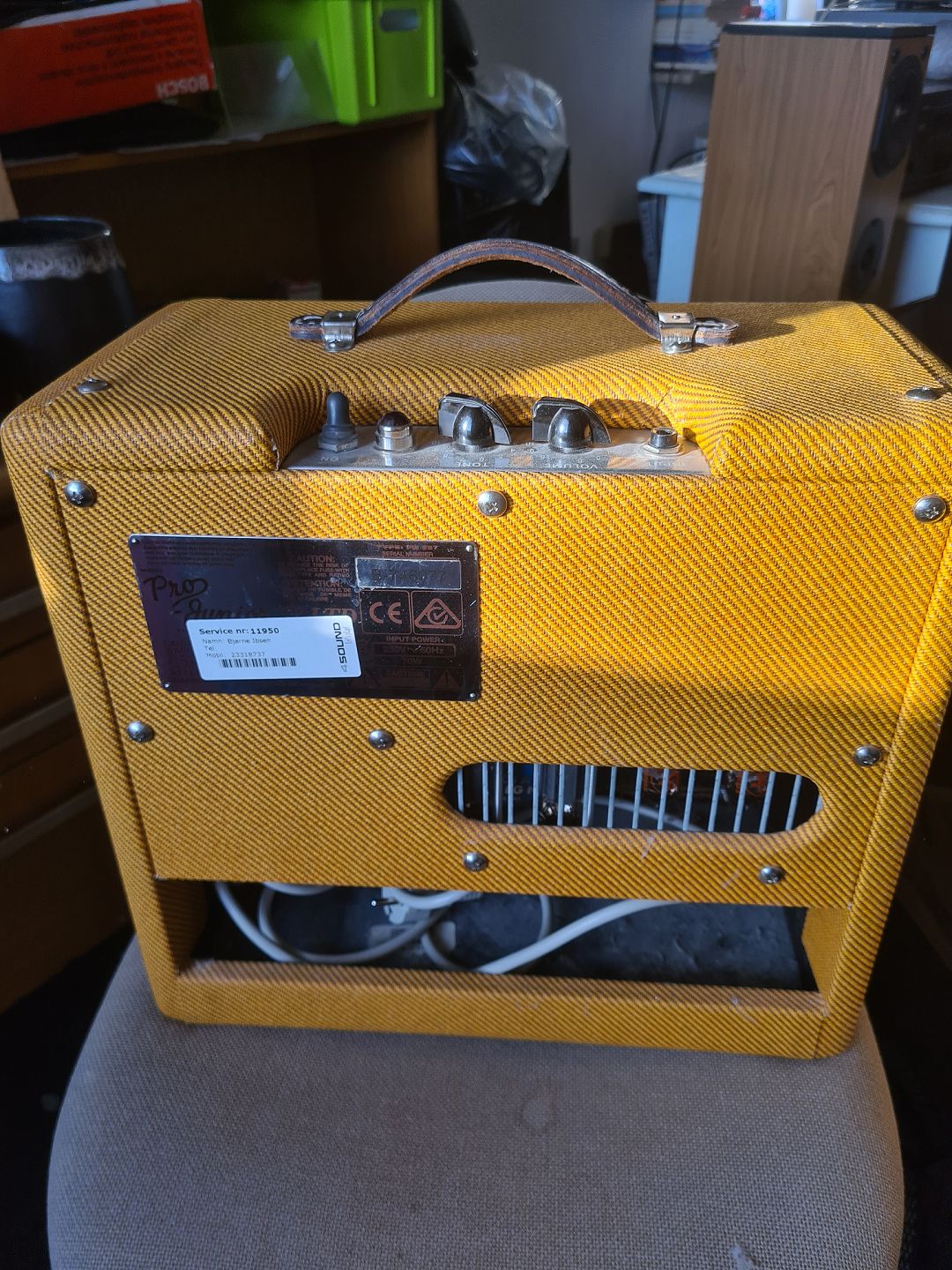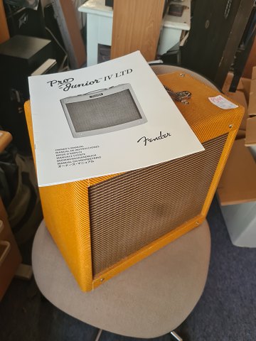 Fender Pro-Junior IV Ltd guitarforstærker type PR 257. Beklædt med gul kanvas. Testet og virker som den skal. Manual medfølger. Højde 36 cm. Bredde 39 cm. Dybde 20 cm. Emne nummer: 60681