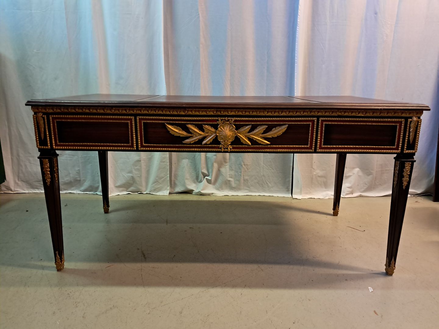 Skrivebord i fineret mahogni, fra 1990erne. Det har brugsspor. Højde 73cm Bredde 153cm Dybde 76cm Højde fra gulv til underkant 62cm Emne nummer: 77538