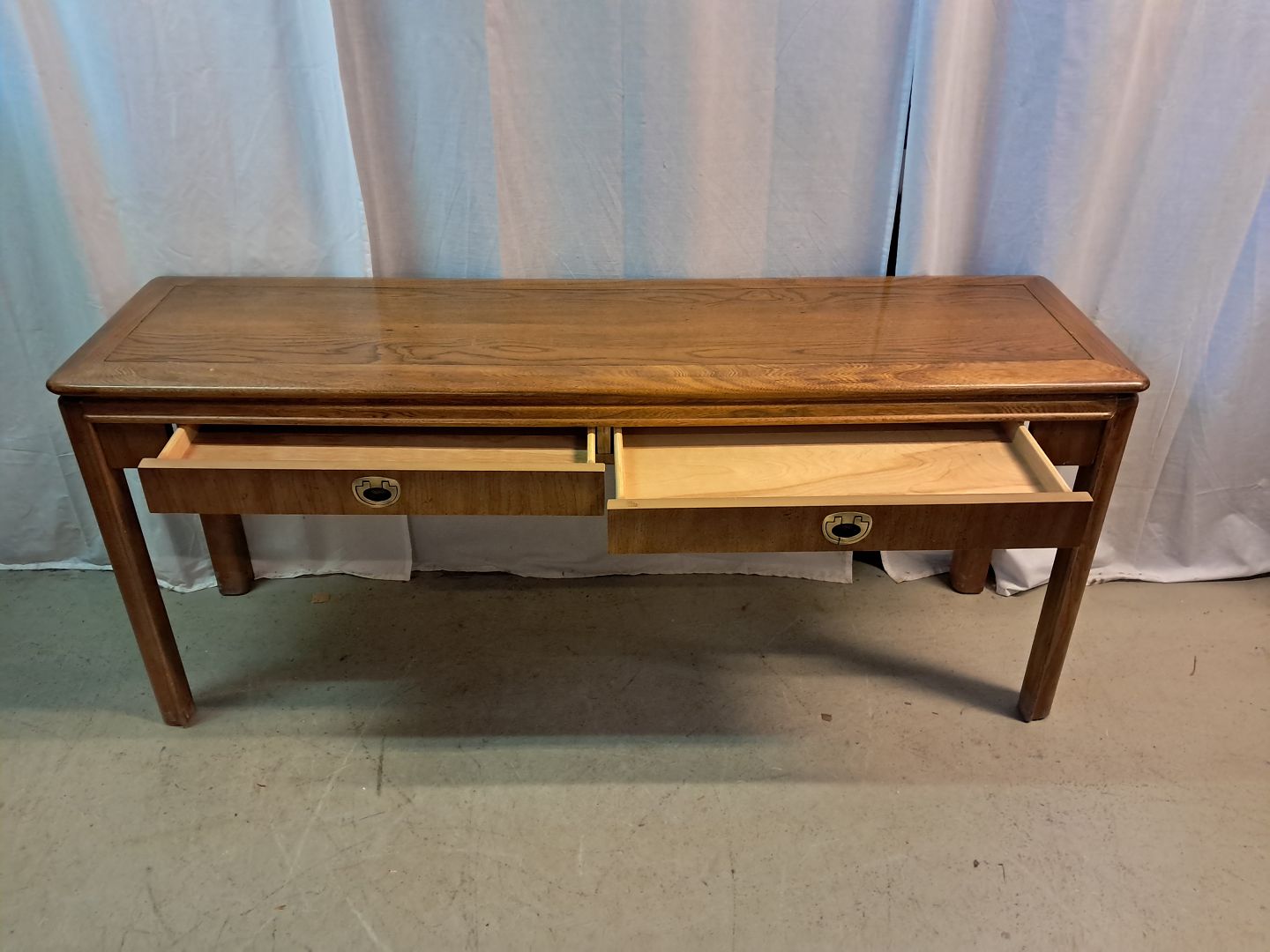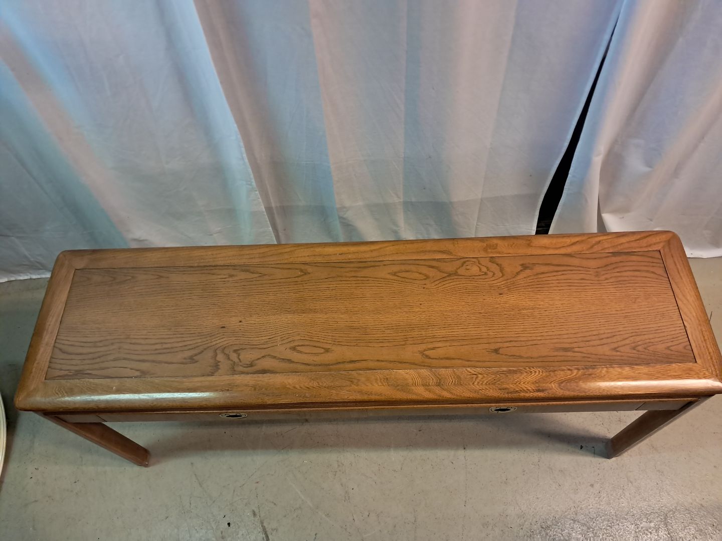 Amerikansk bord i fineret egetræ, fra 1990erne. Det har brugsspor. Højde 66cm Bredde 155cm Dybde 41cm Emne nummer: 77563