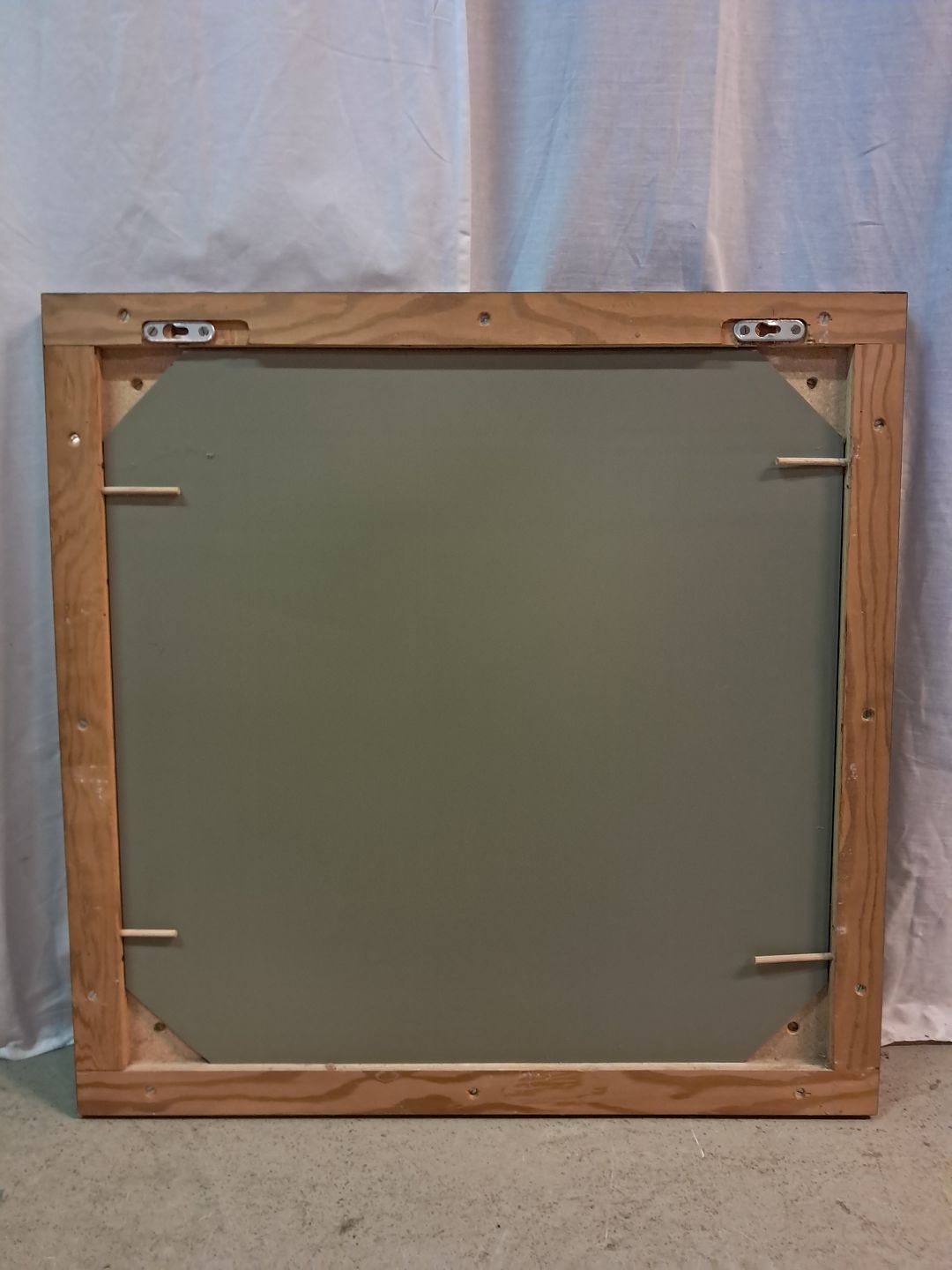 Spejl i fineret palisander, fra 1960erne. Det har brugsspor. Højde 75cm Bredde 75cm Emne nummer: 77593