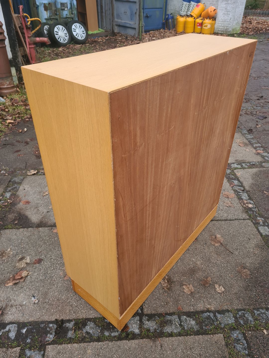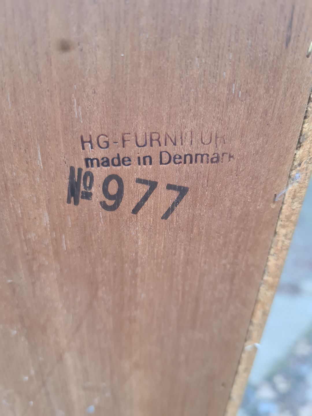 Reol i finéret eg med underskab og hessian beklædt bagbeklædning. Ydført hos HG Funiture i 1970'erne. Fremstår pæn og velholdt uden de store brugsspor. Højde 112 cm. Bredde 101 cm. Dybde 36 cm. Emne nummer: 80922