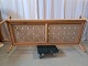 Sofa i massivt egetræ med hynder af kunst-rugskind, fra 2000erne.