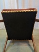 Lænestol i teaktræ med stofbetræk, fra 1960erne. Den har brugsspor og der er slid på den ene side. Ryghøjde 80cm Sædehøjde 42cm Emne nummer: 77735