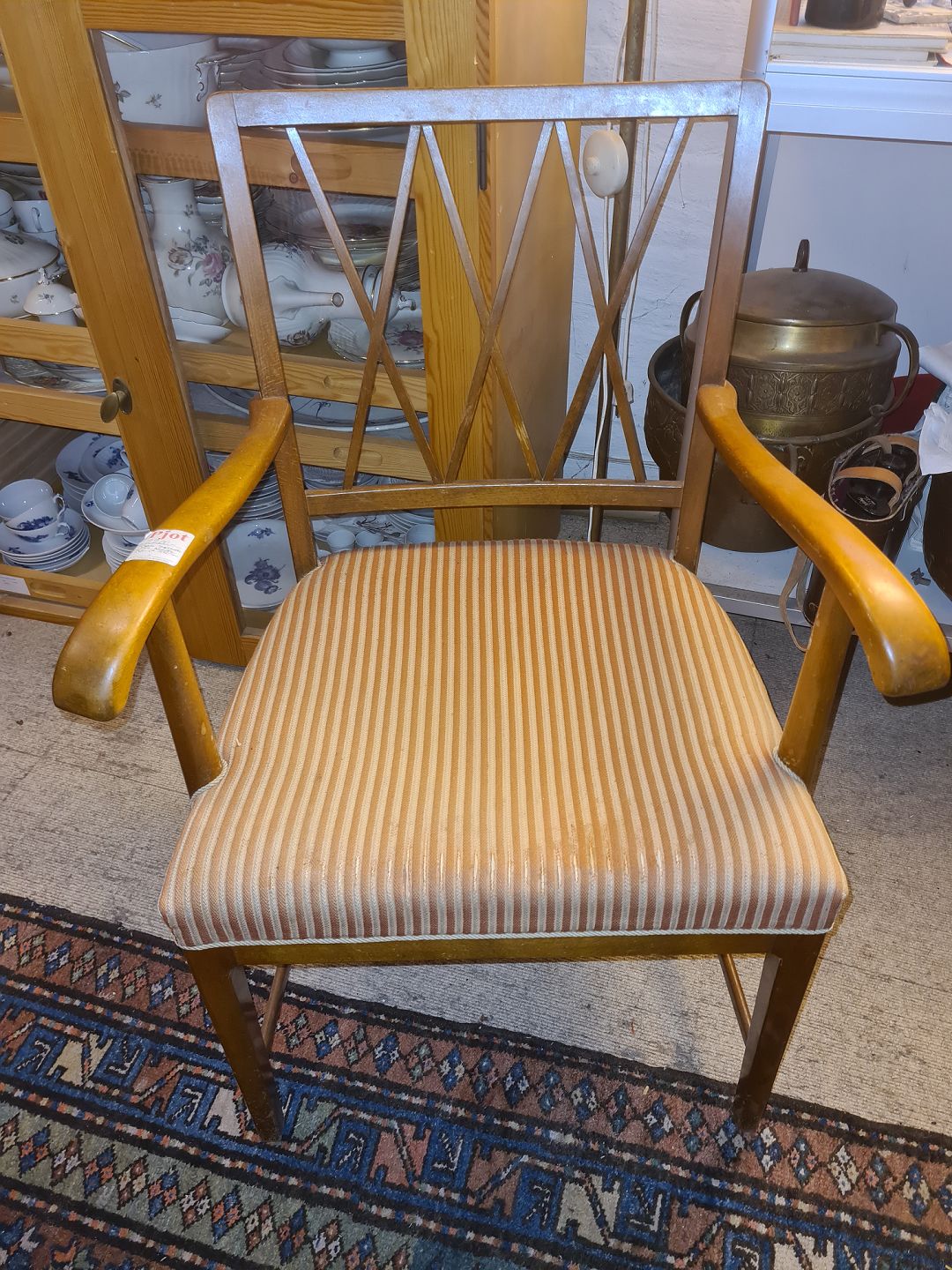 Dansk møbelproducent armstol udført i bejdset bøg m. sæde polstret i møbelstof.