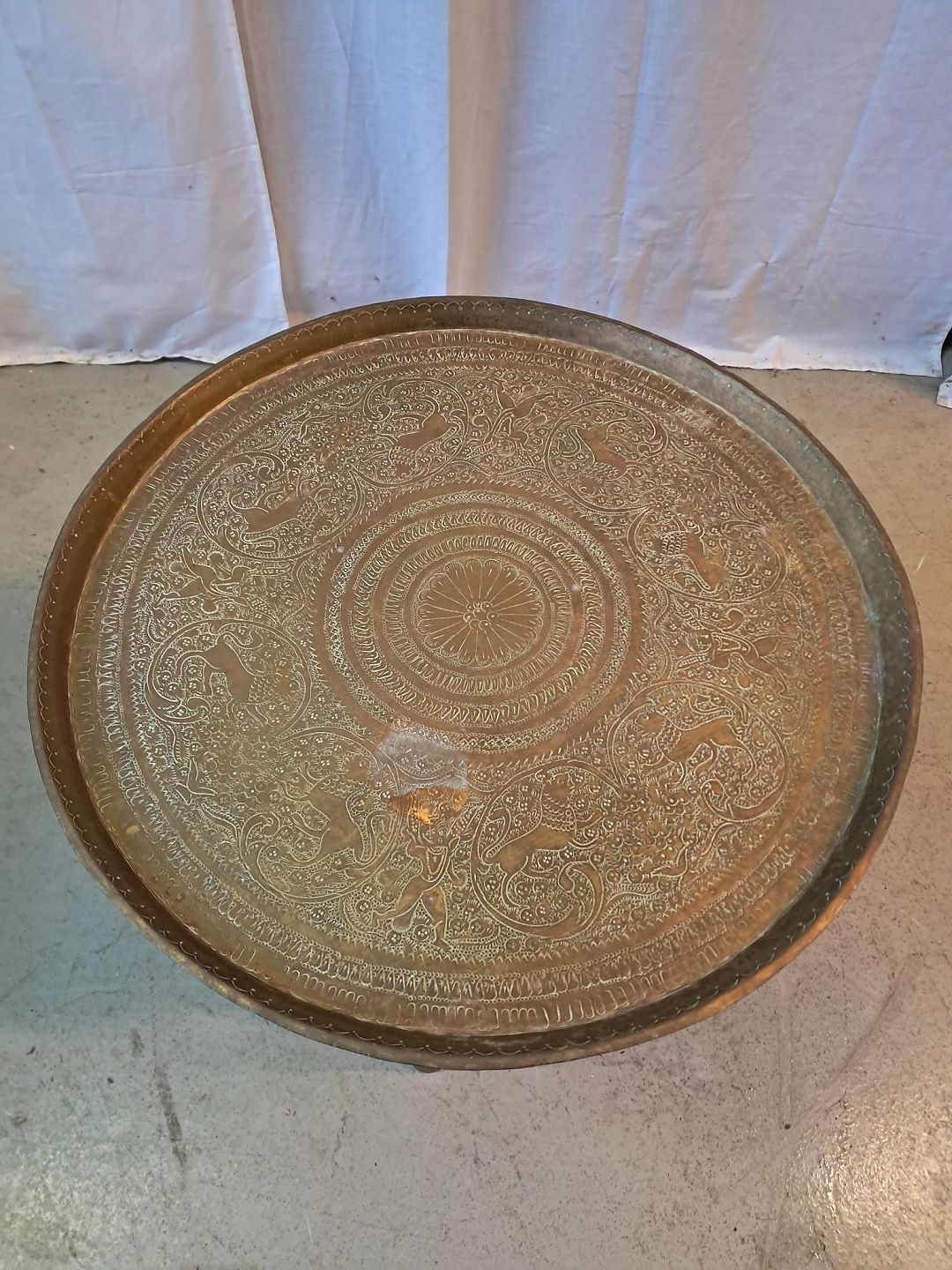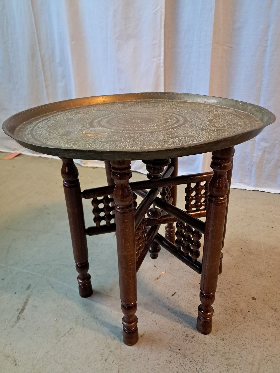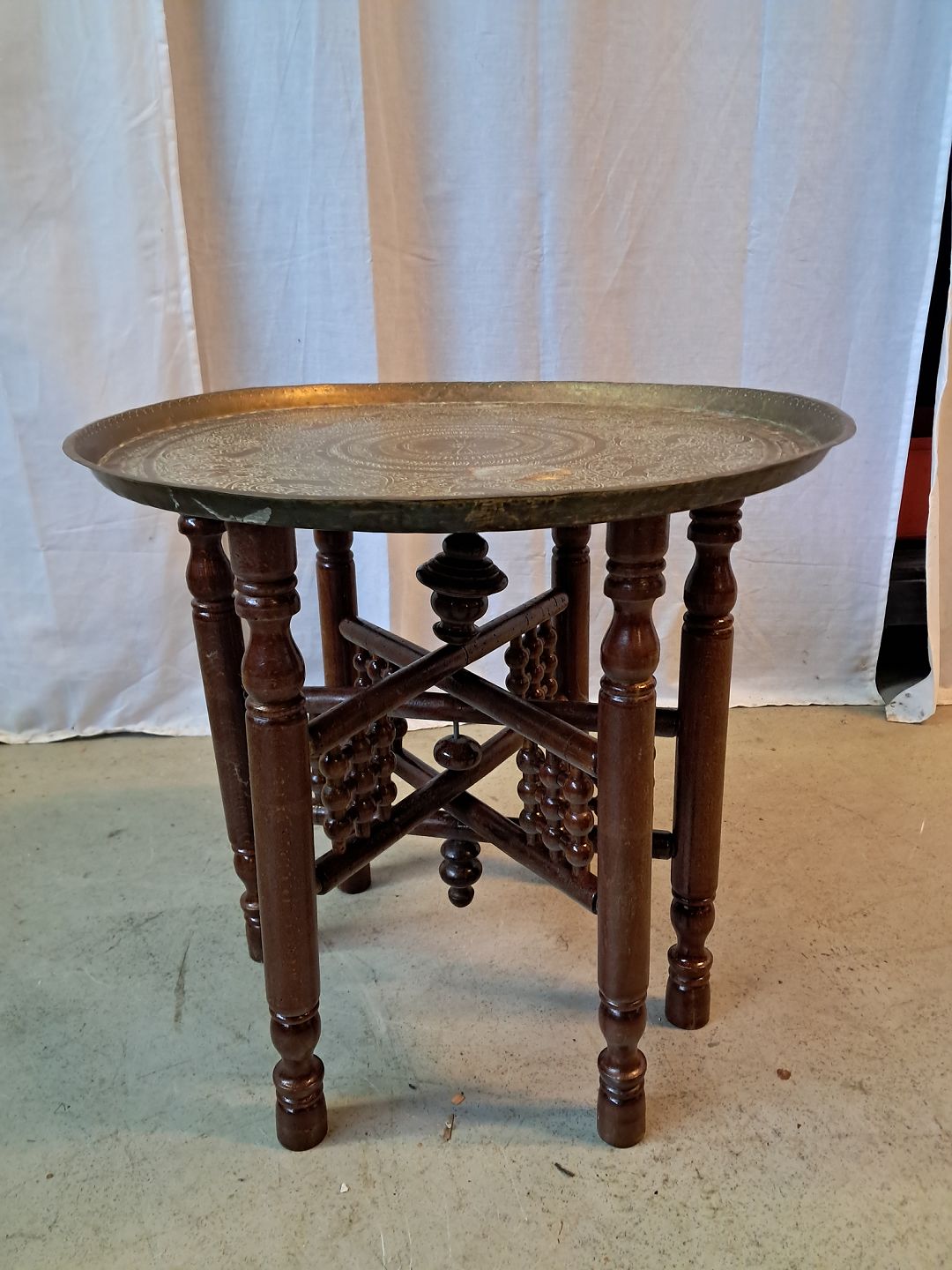 Bori massivt træ med messing plade, fra 1970erne. Det har brugsspor. Højde 47cm Diameter 50cm Emne nummer: 87761