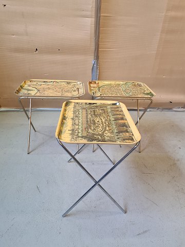 Indskudsborde fra 1970'erne i teak og med kakler. Fremstår pæne og stabile dog med bitte små afslag på kakler på det største bord. Højde 48 cm. Bredde 55 cm. Dybde 40 cm. Emne nummer: 81044